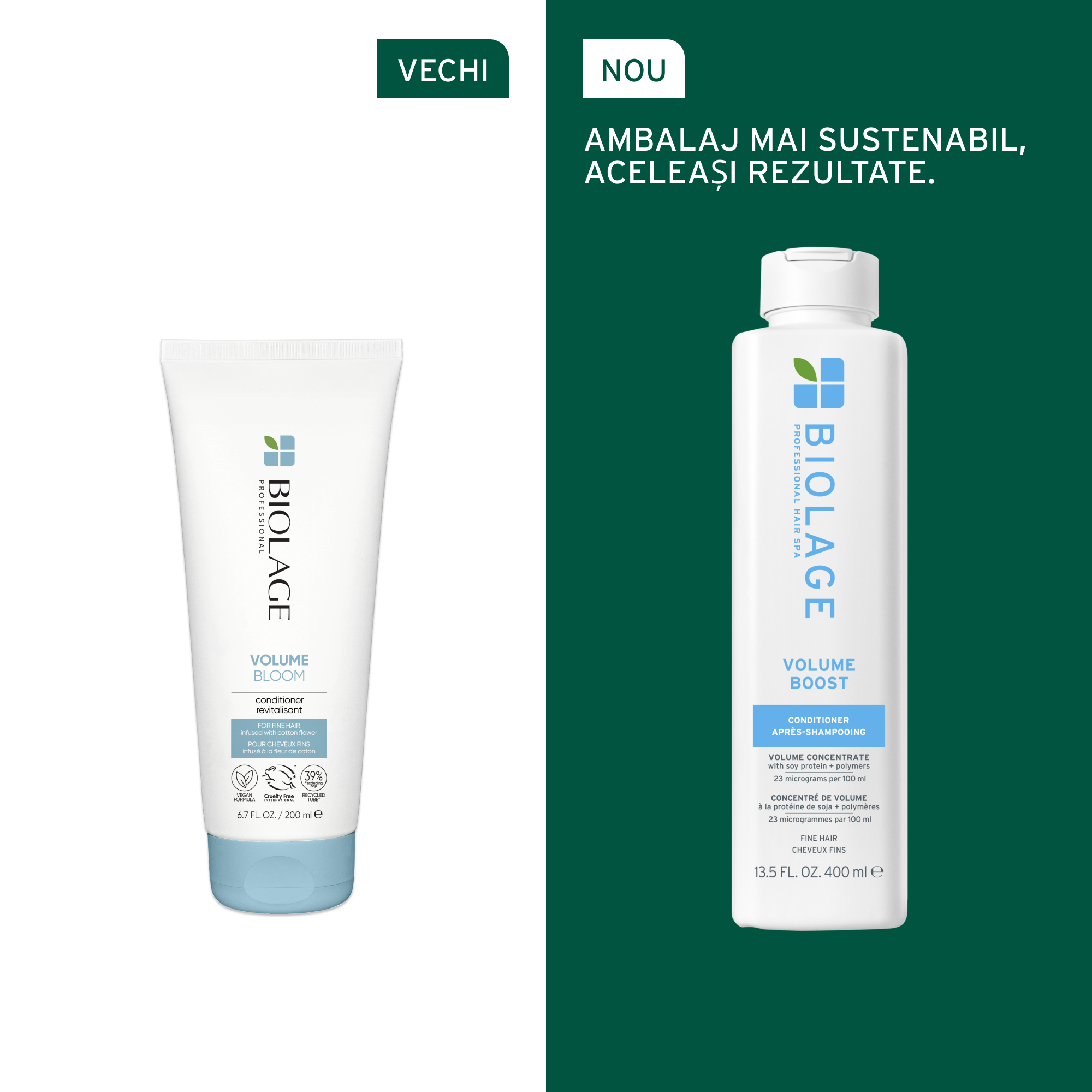 Iti doresti un par cu volum, dar fara sa-l incarci sau sa-l usuci? Balsamul Biolage Volume Boost ofera volum instant de la radacina pana la varfuri, pastrand in acelasi timp hidratarea, textura matasoasa si elasticitatea parului fin. Formula imbogatita cu proteine din soia si polimeri hraneste si fortifica firul de par, oferind un volum natural si de lunga durata.