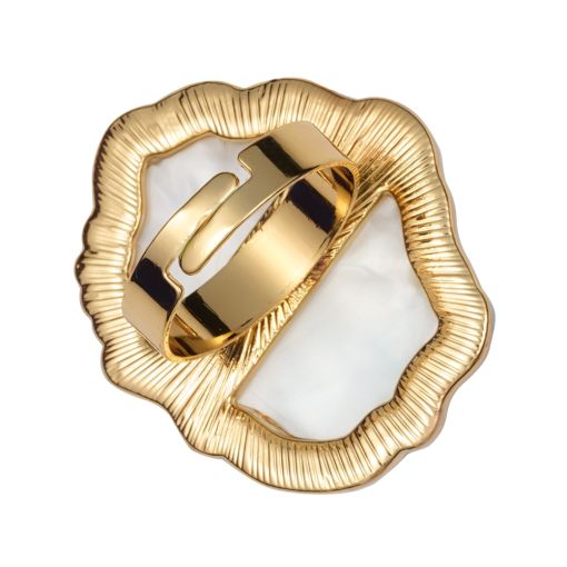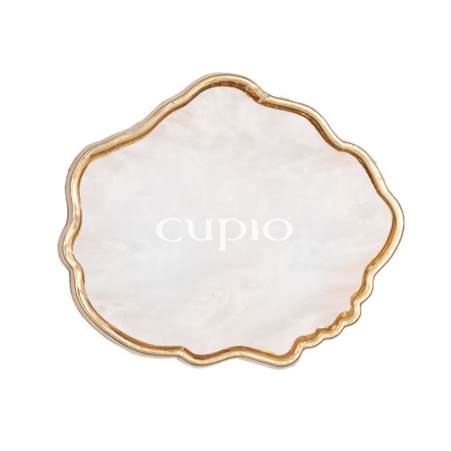 Inel pentru mixarea culorilor este un accesoriu esential pentru realizarea manichiurii. Conceput intr-un design vintage cu forma ondulata, acest inel metalic auriu cu insertie din portelan alb sidefat este perfect pentru amestecarea culorilor si crearea de efecte unice.