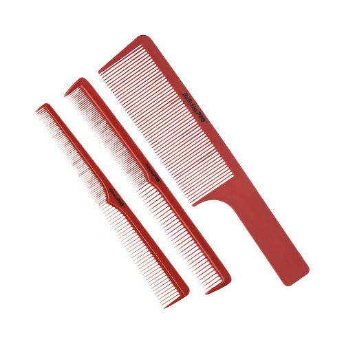 BabylissPro - Set 3 Piepteni Rosii pentru Frizerie