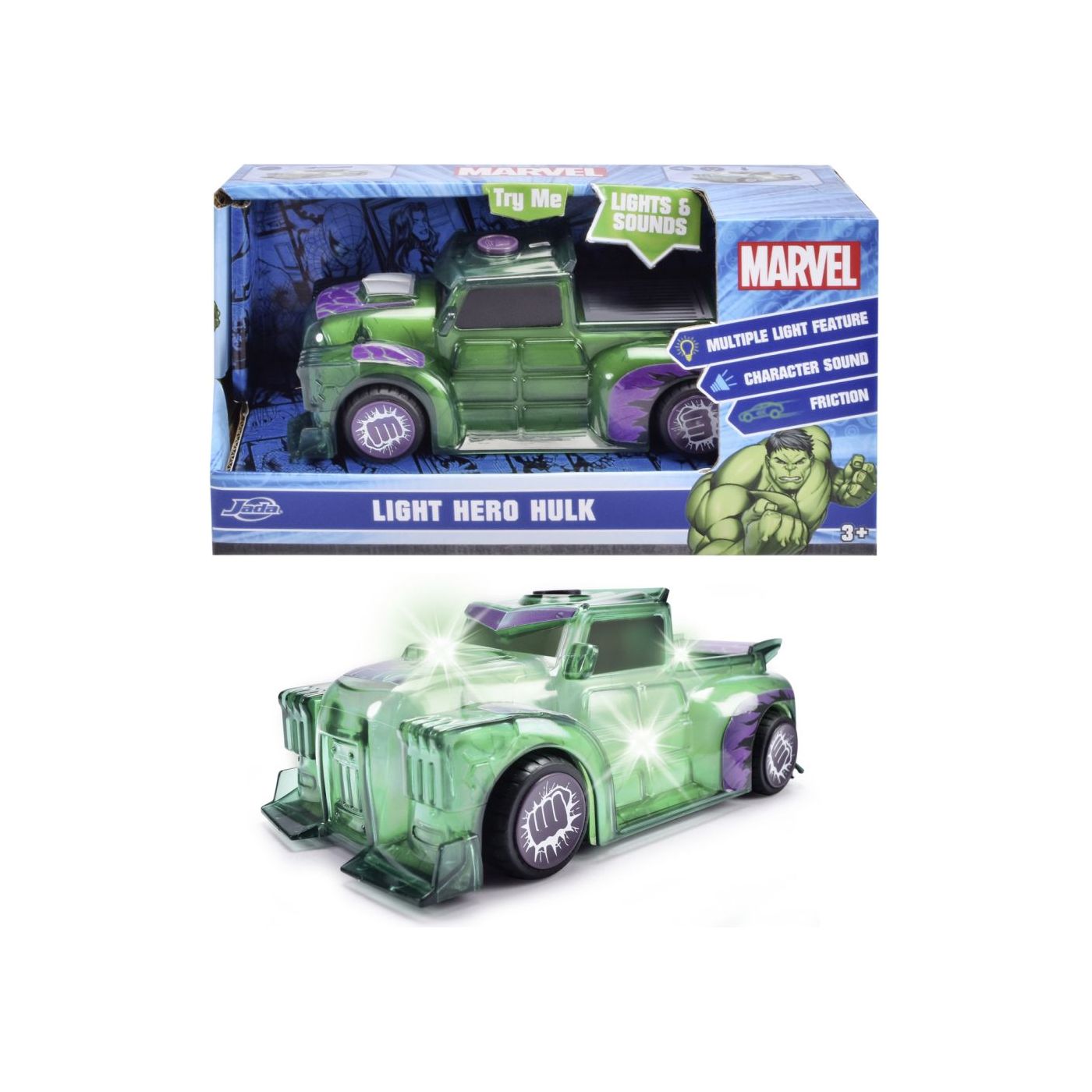 Cu designul său verde masiv, mașina de jucărie MARVEL cu licență oficială Light Hero (15 cm) prezintă în mod eficient puterea extraordinară a Incredibilului Hulk.