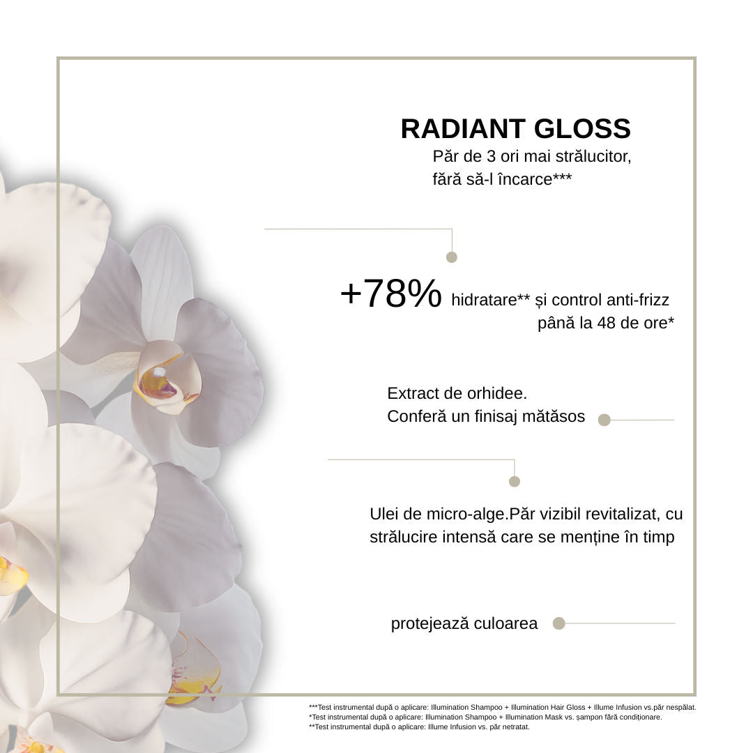 Această formulă care oferă strălucire transformă părul tern în mătase lucioasă. Experimentează o îngrijire intens hidratantă cu Radiant Gloss Illuminating Mask.