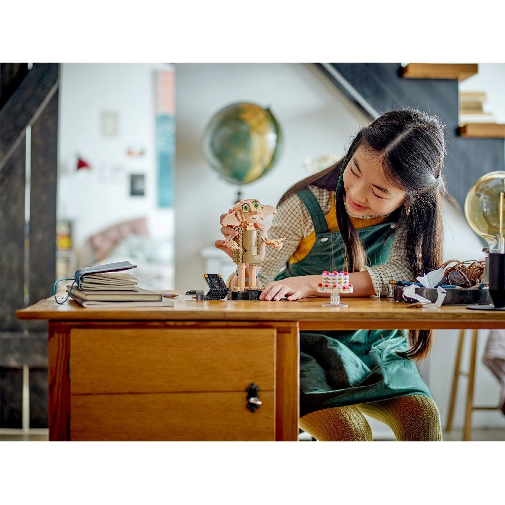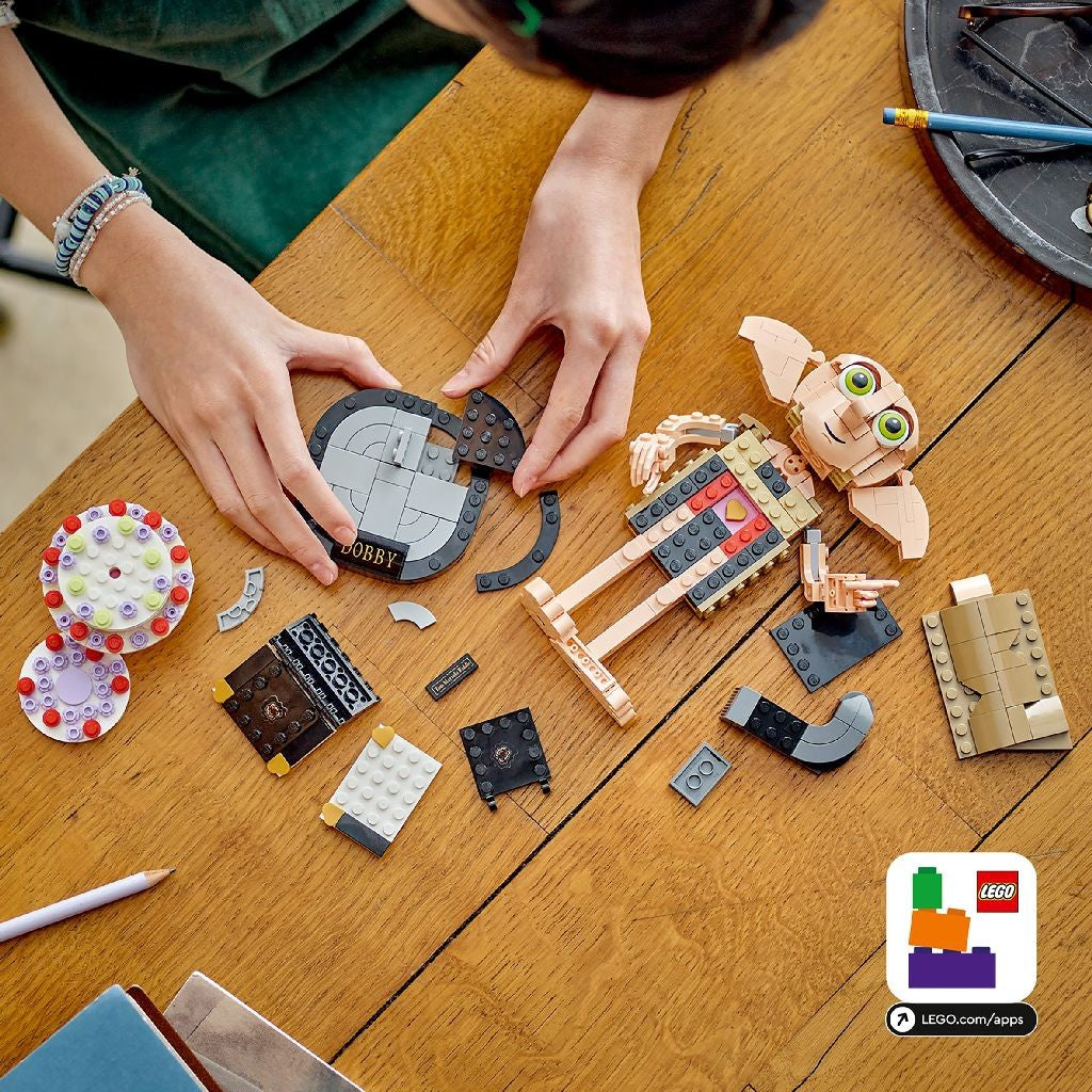 Figurina din cărămizi imediat recognoscibilă are capul articulat pentru diferite expresii, iar brațele și degetele articulate îi permit lui Dobby să țină accesoriile emblematice incluse. Setul include un model construibil detaliat al șosetei lui Harry Potter, cu jurnalul lui Tom Riddle, pe care Harry l-a folosit pentru a-l elibera pe Dobby, precum și tortul plutitor al mătușii Petunia pentru a inspira reconstituirea unor scene clasice.