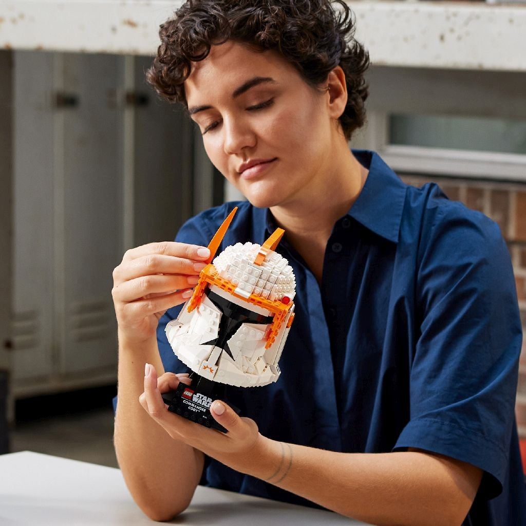Adu un omagiu unui soldat devotat cu acest model de constructie si etalare LEGO&Star Wars Clona Comandantul Cody Casca pentru adulti.