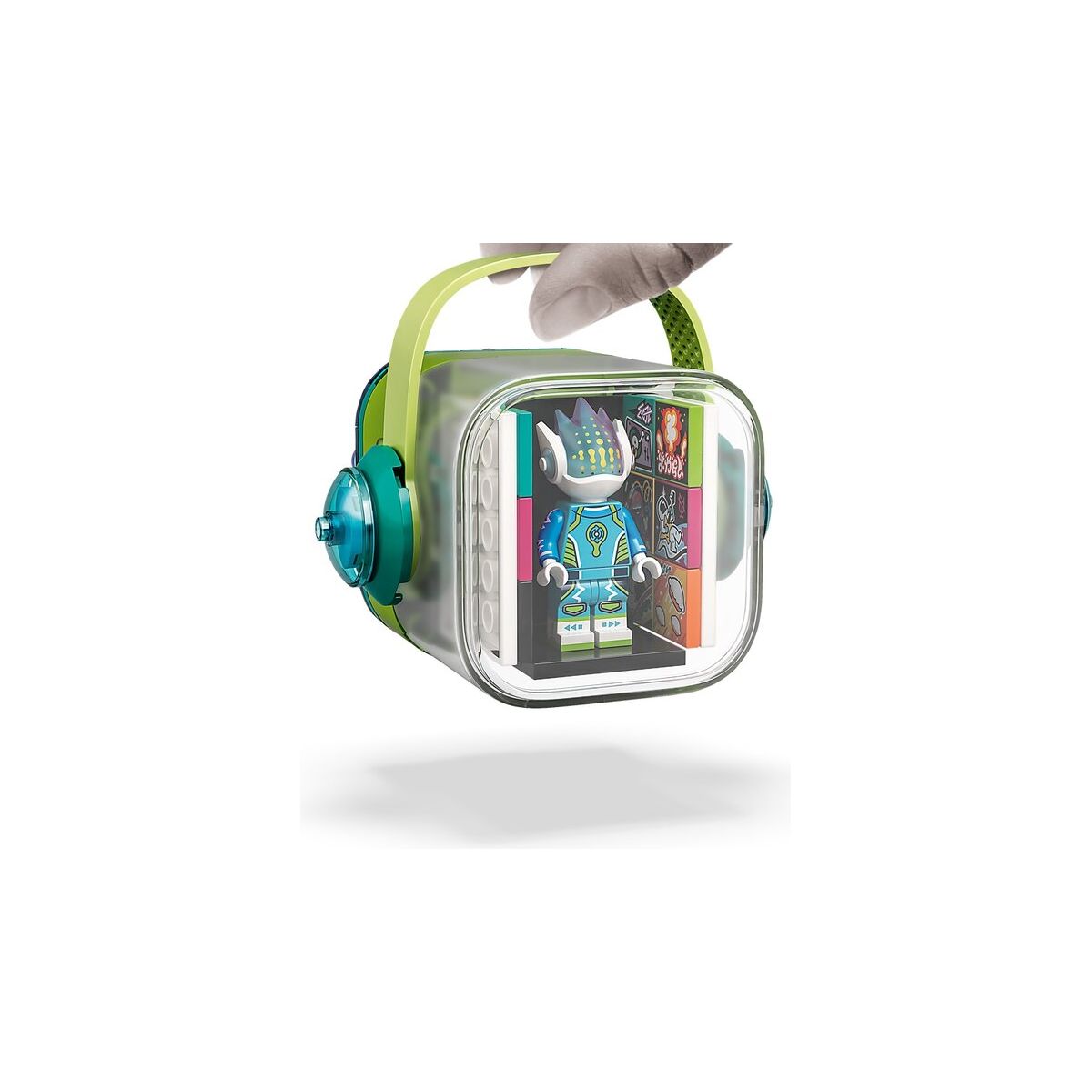 La interior ai spatiu pentru a pastra scena scanabila, 16 BeatBits si accesoriile. Aplicatia LEGO VIDIYO este compatibila doar cu anumite dispozitive iOS si Android.