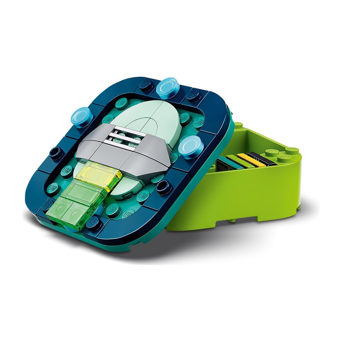 Copiii se vor distra de minune decorand cutia BeatBox folosind piese LEGO. Pot alege dintre mai multe design-uri un pupitru de DJ, un OZN sau o racheta sau pot inventa unul complet nou! Cutia BeatBox se pliaza si are loc pentru minifigurina si BeatBits, deci e perfecta pentru a lua joaca cu tine la drum!