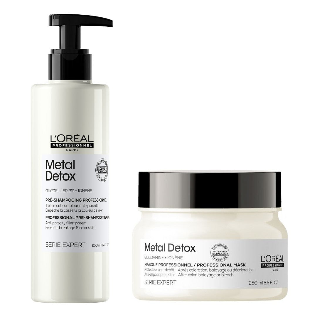 Setul L’Oréal Professionnel Metal Detox este conceput pentru a elimina metalele acumulate în fibra capilară, prevenind ruperea părului, pierderea luminozității și degradarea culorii.