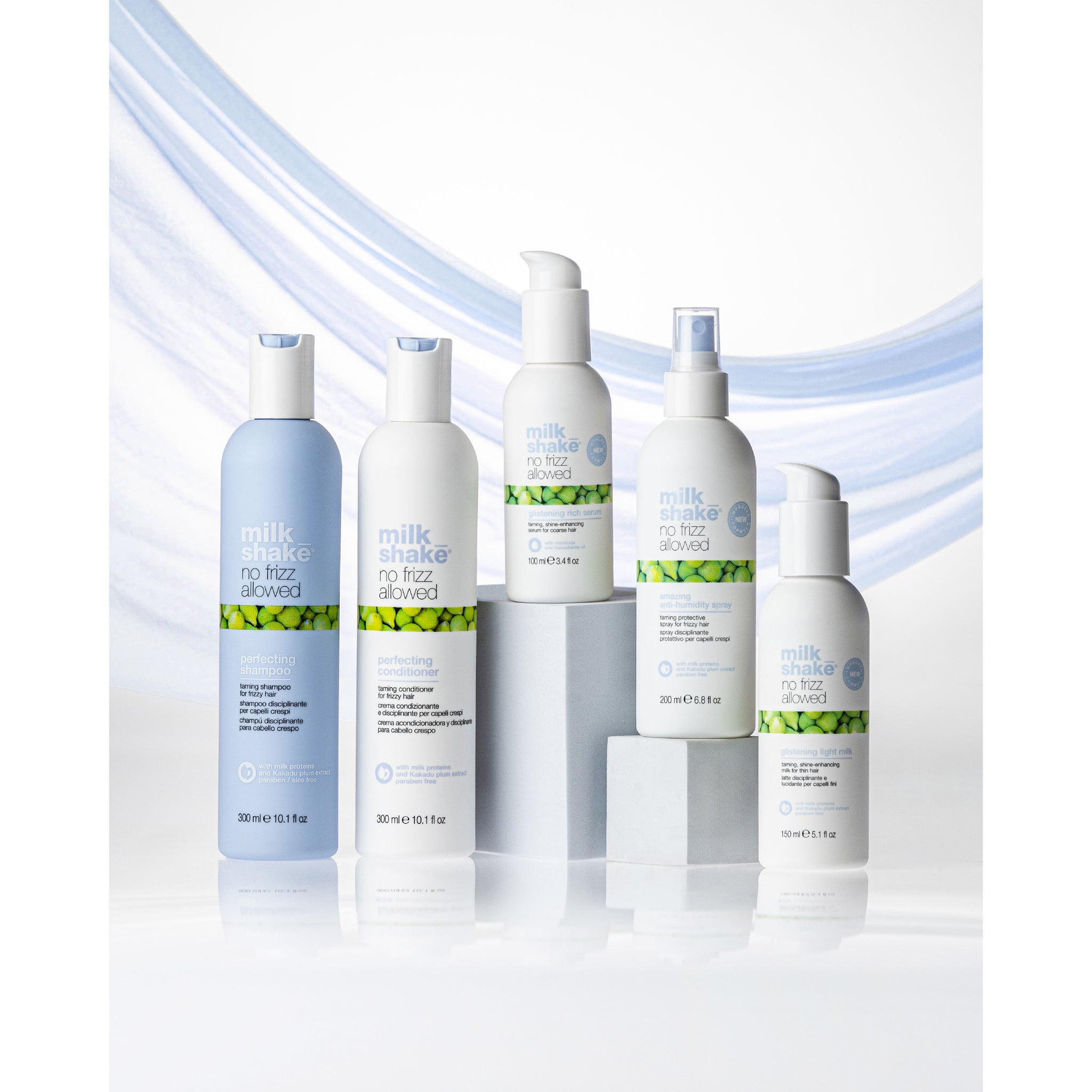 MilkShake No Frizz Allowed Amazing Anti-humidity este un spray anti-umiditate inovator, creat pentru a elimina efectul de frizz fără a lăsa reziduuri sau a îngrășa părul. Polimerii de ultimă generație se activează la căldură și formează un film protector în jurul firului de păr, oferindu-i impermeabilitate totală. Este ideal ca termo-protector și pentru „sigilarea” coafurii, prelungind durabilitatea acesteia chiar și în condiții de umiditate crescută.