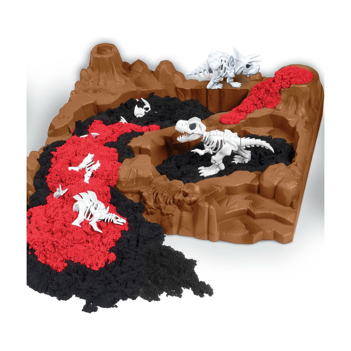 Singurul set de joacă care vă permite să excavați și să descoperiți fosile de dinozaur îngropate în nisip kinetic original. Nisipul kinetic negru și roșu seamănă perfect cu pământul și lava, pentru o experiență reală a excavarilor.
