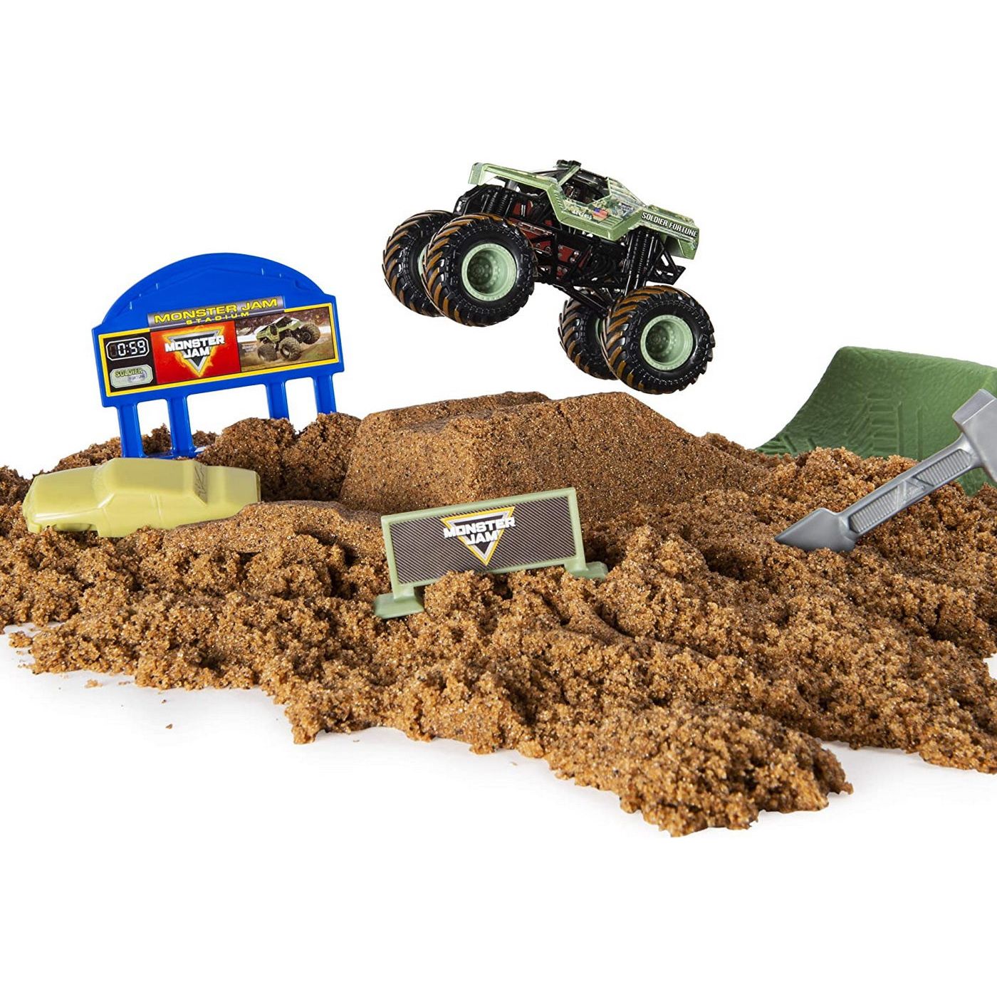 MONSTER DIRT De la producătorii de Kinetic Sand vine noul set Monster Dirt cu adevărat realist cu personajul Soldier Fortune! Această murdărie sintetică arată și se simte la fel ca ceea ce profesioniștii conduc!