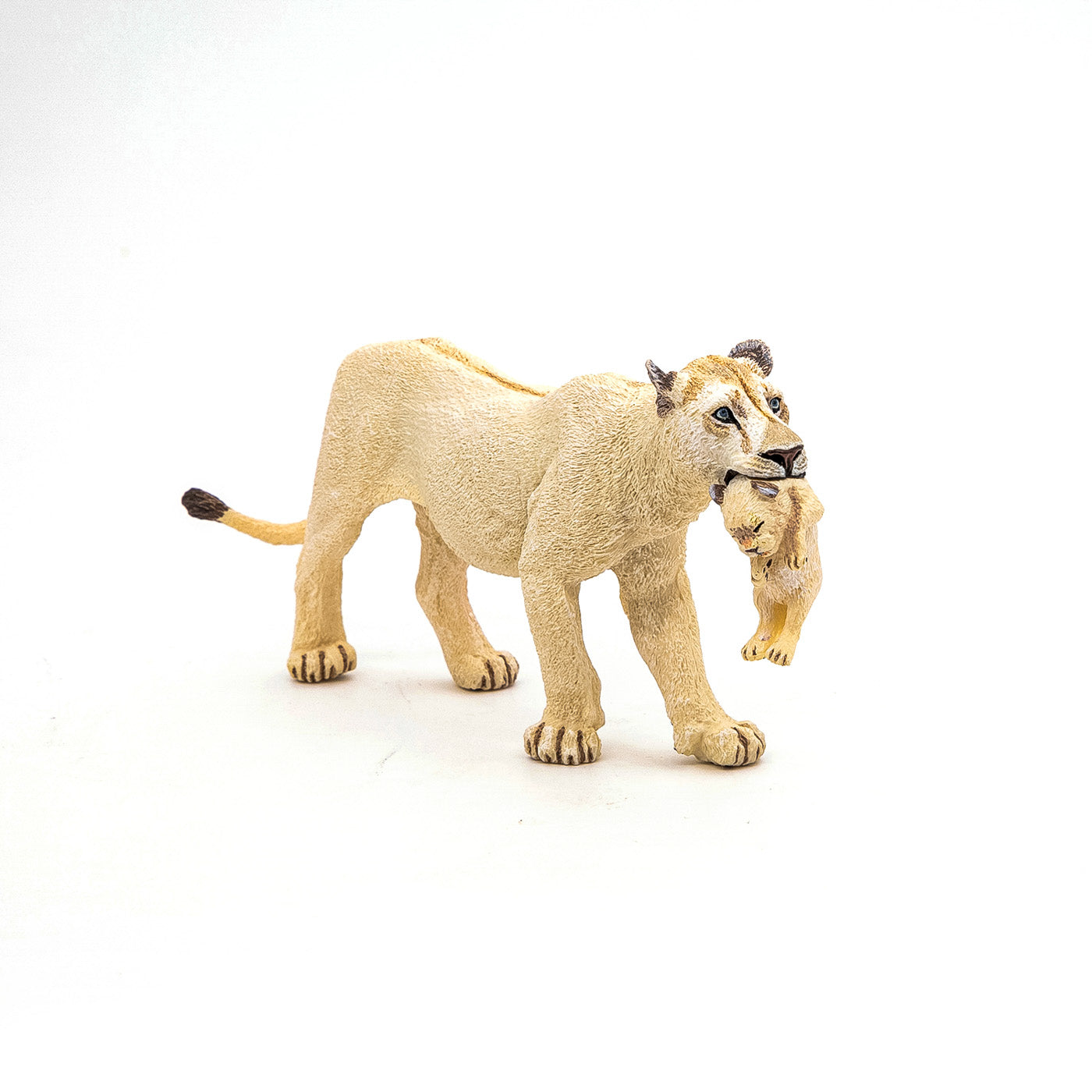 Vizitați cerbul cu coada albă maiestuoasă în inima pădurilor, explorați savana alături de puternicul tigru de Sumatra sau urcați pe vârfuri acoperite de zăpadă pentru a căuta leopardul de zăpadă. Jucăria Leoaică albă cu pui este o figurină pictată manual care aduce produsul foarte aproape de realitate prin cele mai mici detalii realizate cu o acuratețe înaltă. Figurina Leoaică albă cu pui poate fi o jucărie educațională pentru copii, dar și o piesă de colecție pentru pasionații fără vârstă. Leul este o specie de mamifer carnivor din familia felinelor ce trăiește în Africa. Există trei subspecii de lei: leul african, leul indian și leul alb. Cele mai răspândite specii sunt leul african și cel indian, leul alb fiind foarte rar (majoritatea trăind în captivitate). În diferite culturi, leoaica albă este considerată un animal divin, probabil datorită rarității acestui animal. Un excelent stimulent pentru a extinde imaginația copiilor, dezvoltând multe oportunități de joacă.