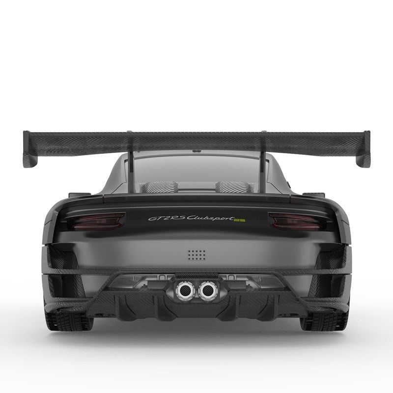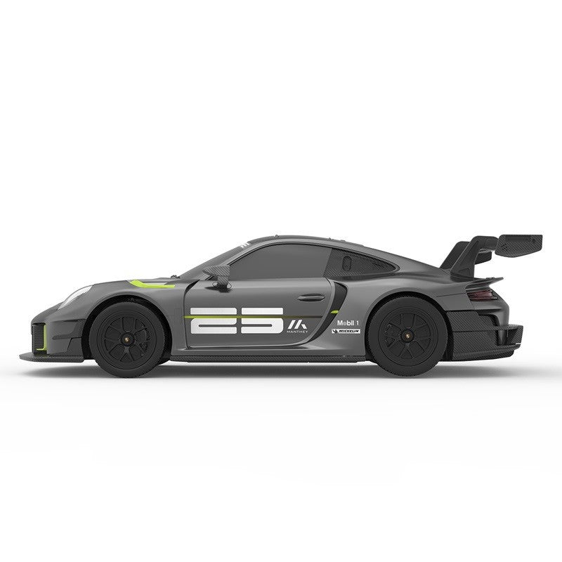 Copilul dumneavoastră se poate juca în voie cu mașina cu telecomandă Porsche 911 GT2 Club Sport 25, scara 1 la 24, oferită de brandul internațional Rastar. Nicio cursă nu este imposibil de câștigat cu această mașinuță, replica oficială cu licență a modelului original, construită cu mare atenție la detalii. Mașinuța are proporțiile ideale pentru momente pline de distracție și amuzament, având dimensiunile în centimetri după cum urmează: 20.2 x 8.1 x 7.1.