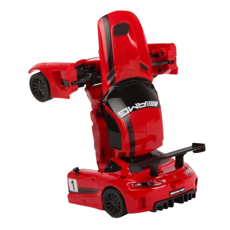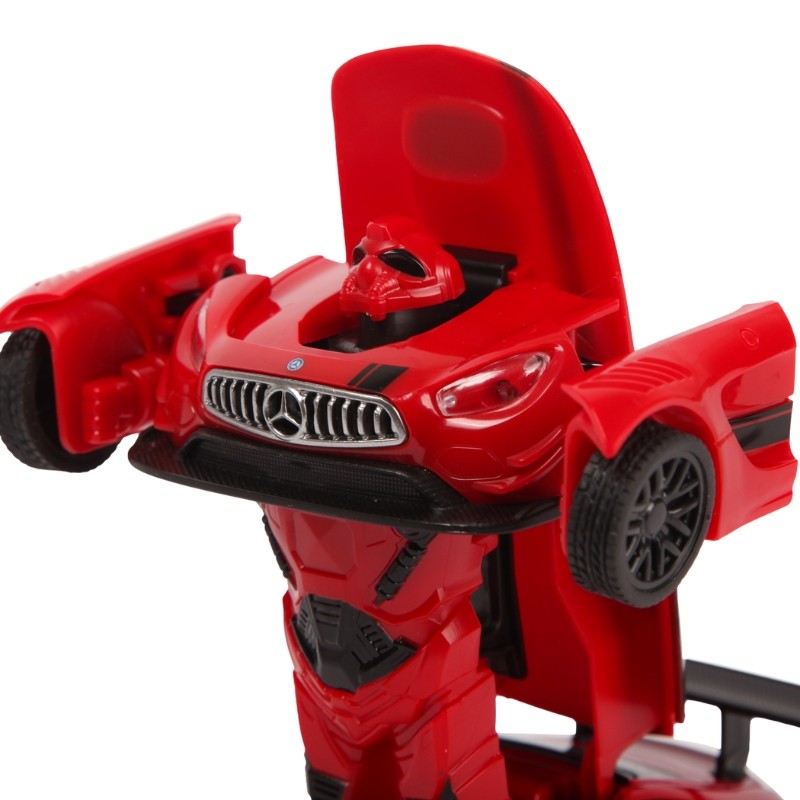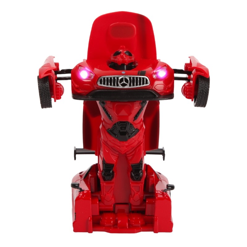 Mașinuța Mercedes-Benz GT3 Transformable este gata de a ieși din cutie! Poate fi mașinuță sau robot! Efecte luminoase și sunete în timpul mișcării. Mașinuța are proporțiile ideale pentru momente pline de distracție și amuzament, având dimensiunile în centimetri după cum urmează: 13.5 x 9.5 x 15.5.