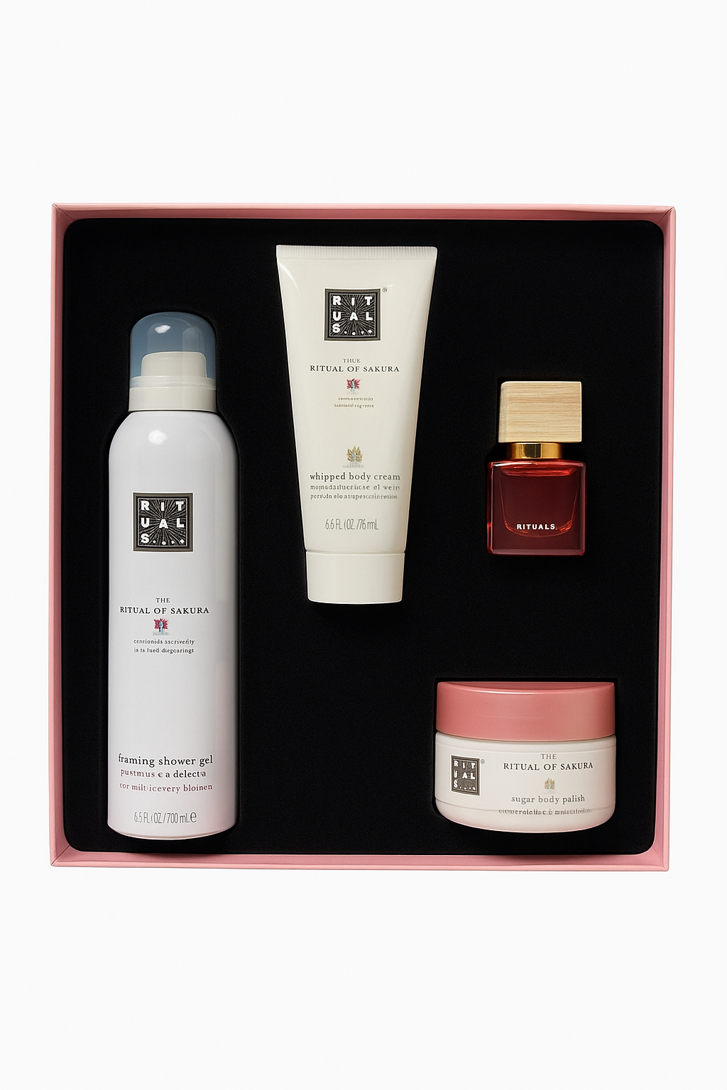 Redescopera frumusetea in fiecare zi cu acest set cadou elegant din colectia The Ritual of Sakura, inspirat de traditia japoneza de a sarbatori renasterea si noile inceputuri. Combina parfumul delicat de floare de cires si lapte de orez cu produse de ingrijire premium pentru corp si simturi. Este cadoul perfect pentru tine sau pentru o persoana draga.