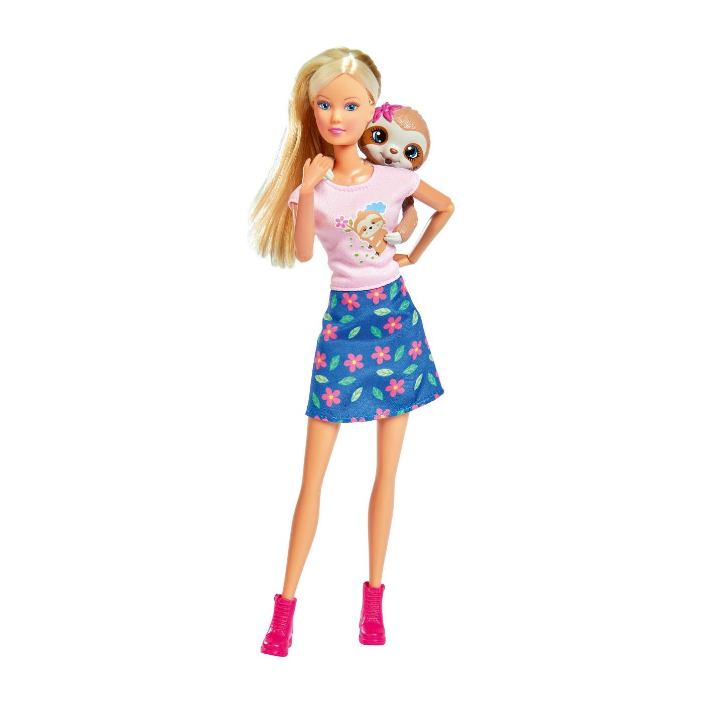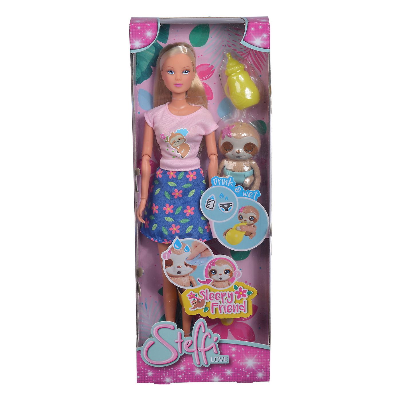 Steffi este împreună cu leneșul ei favorit și are grijă de el. Leneșul are funcția bea și face pipi iar setul include sticluță și scutec.