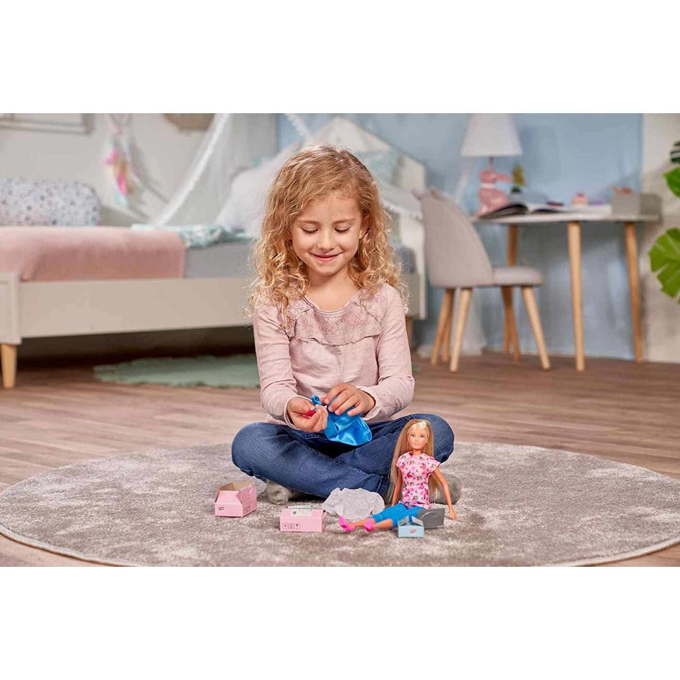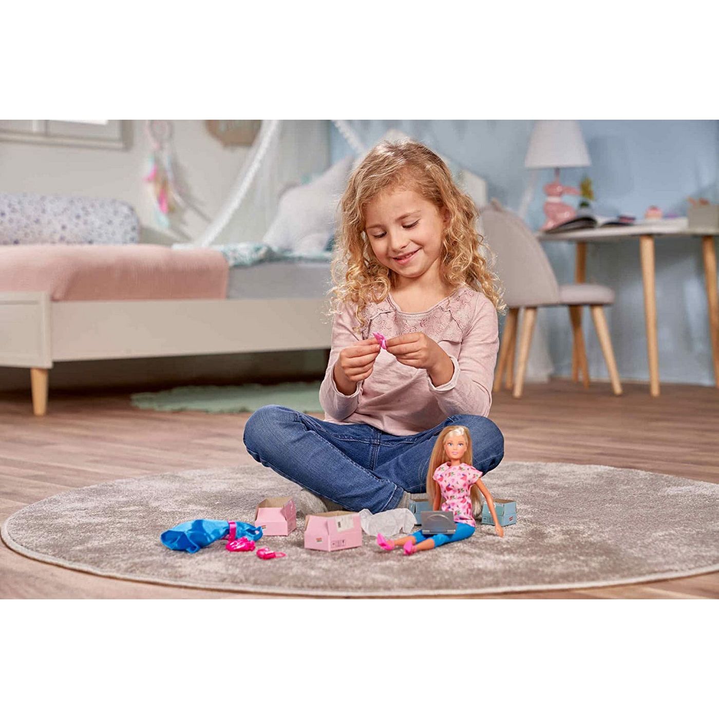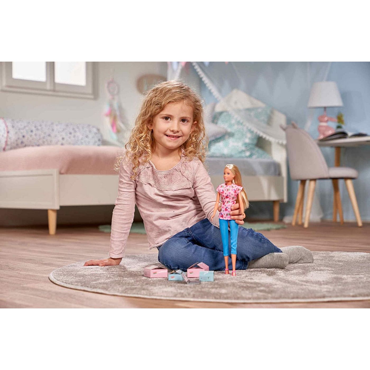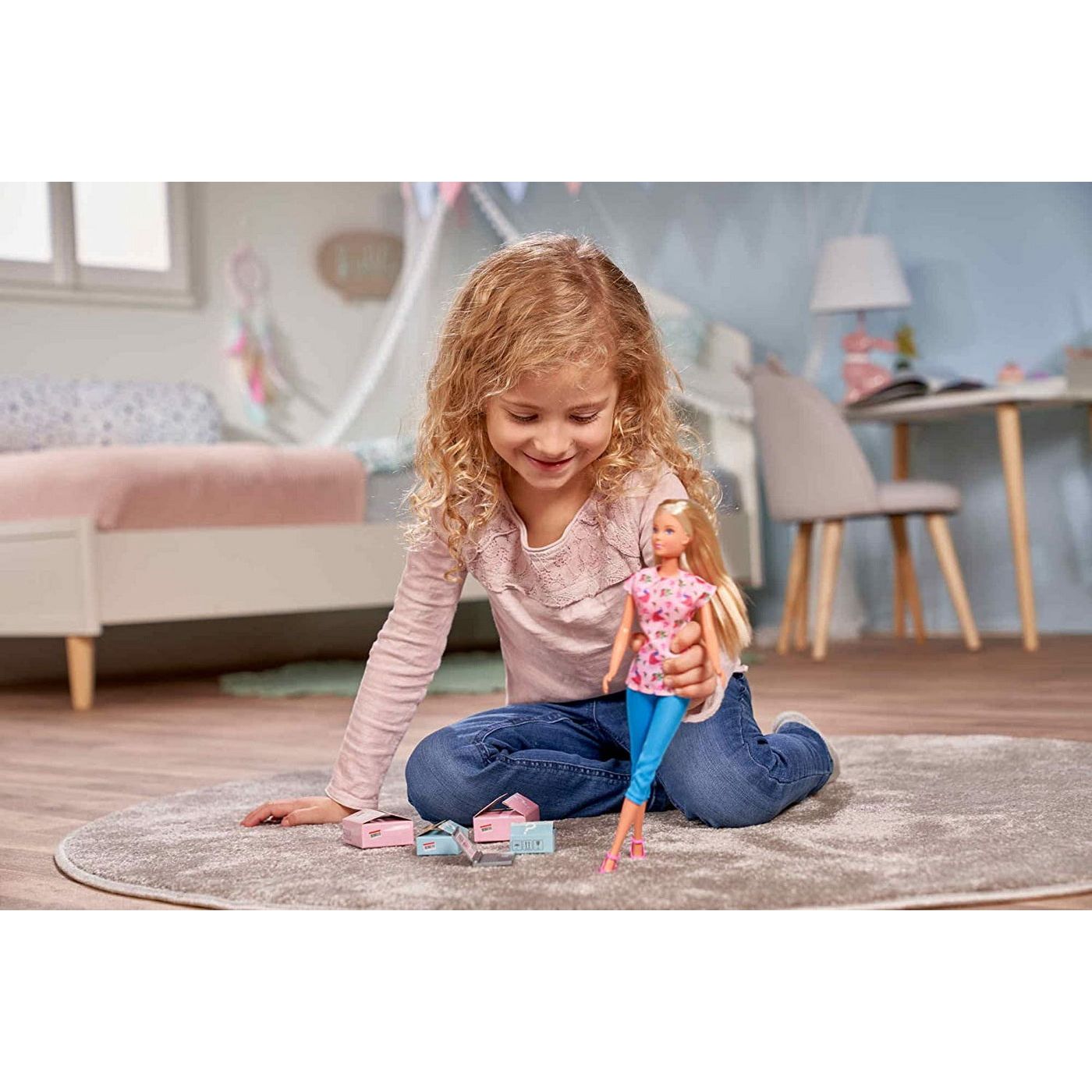 Patru pachete surpriză - Pe lângă pantalonii și tricou, păpușa Steffi are o înălțime de 29 cm. Setul conține patru pachete pe care copiii le despachetează și sunt echipate cu îmbrăcăminte și accesorii. Ce vom găsi în ele?