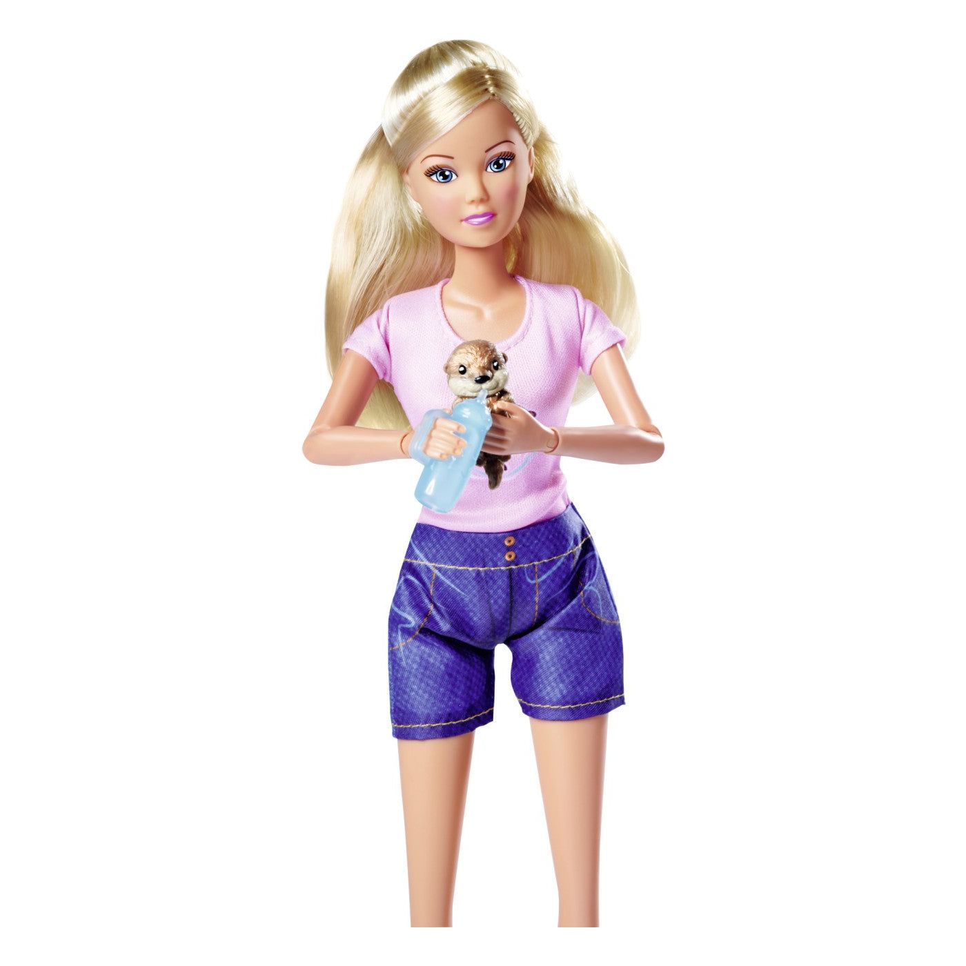 Păpușa Steffi Love este o adevărată fashionistă. Îi plac hainele șic și coafurile la modă. Fetele își pot stiliza și îmbrăca păpușa în tendințele actuale ale modei. Steffi a adoptat două mici vidre de care îi pasă. Ea poartă chiar și un tricou cu un motiv drăguț cu vidră.
