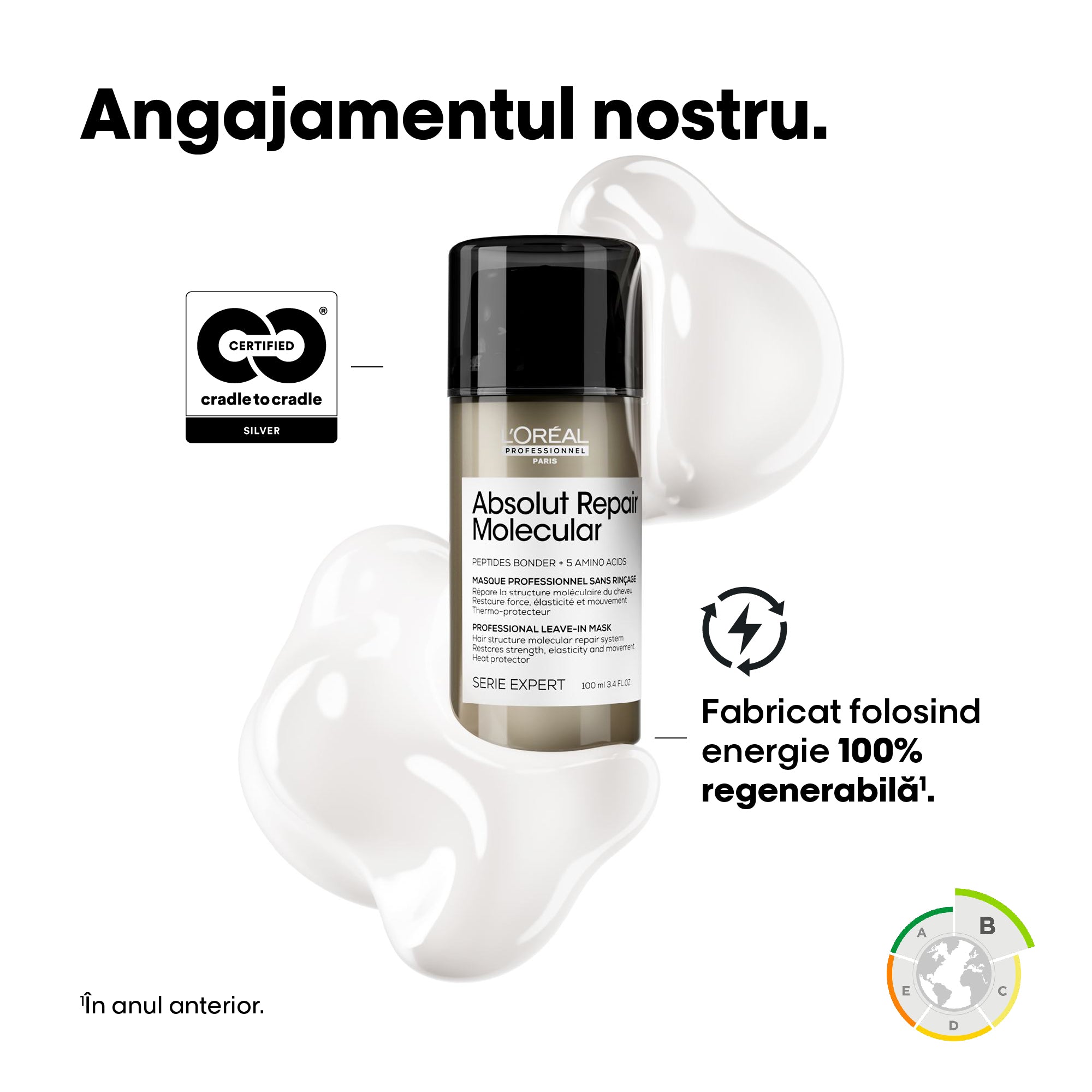 Crema leave in profesionala, fara clatire Absolut Repair Molecular, este destinata pentru parul deteriorat. Crema leave in pentru parul deteriorat, este conceputa cu legaturi Peptidice + 5 Aminoacizi pentru a repara structura moleculara a parului.
