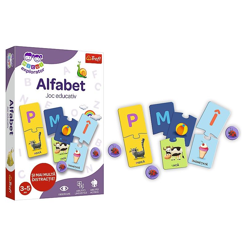 Alfabet este un joc educativ care îi ajută pe copii să învețe mai ușor alfabetul. Este un joc distractiv de potrivire a literelor și imaginilor însoțitoare. Dezvoltă vocabularul copiilor, îi învață să construiască propoziții corect, precum și să recunoască obiecte și să le asocieze cu numele lor. La joc sunt atașate scenarii și propuneri de jocuri care pot fi utilizate de părinți.